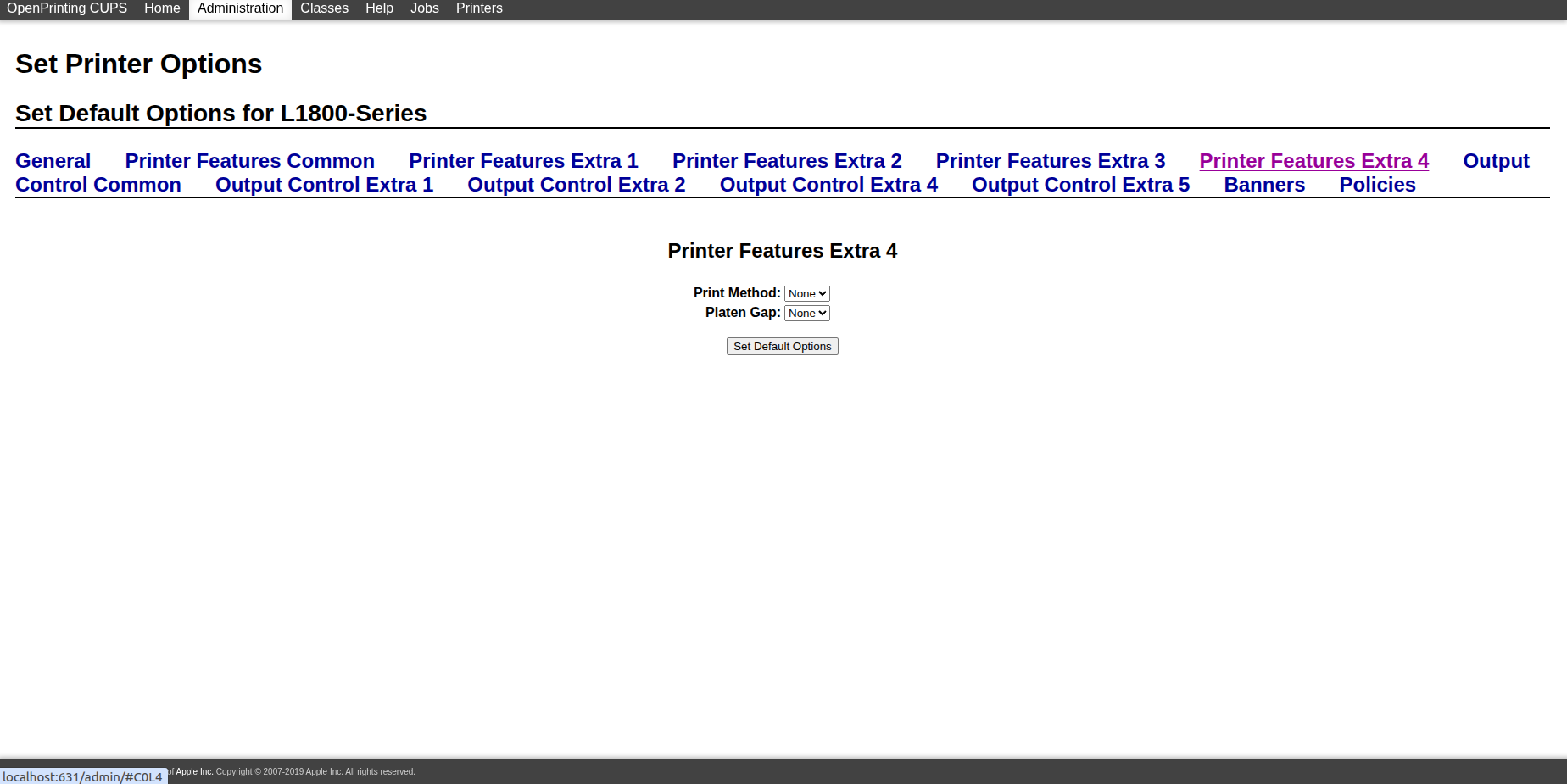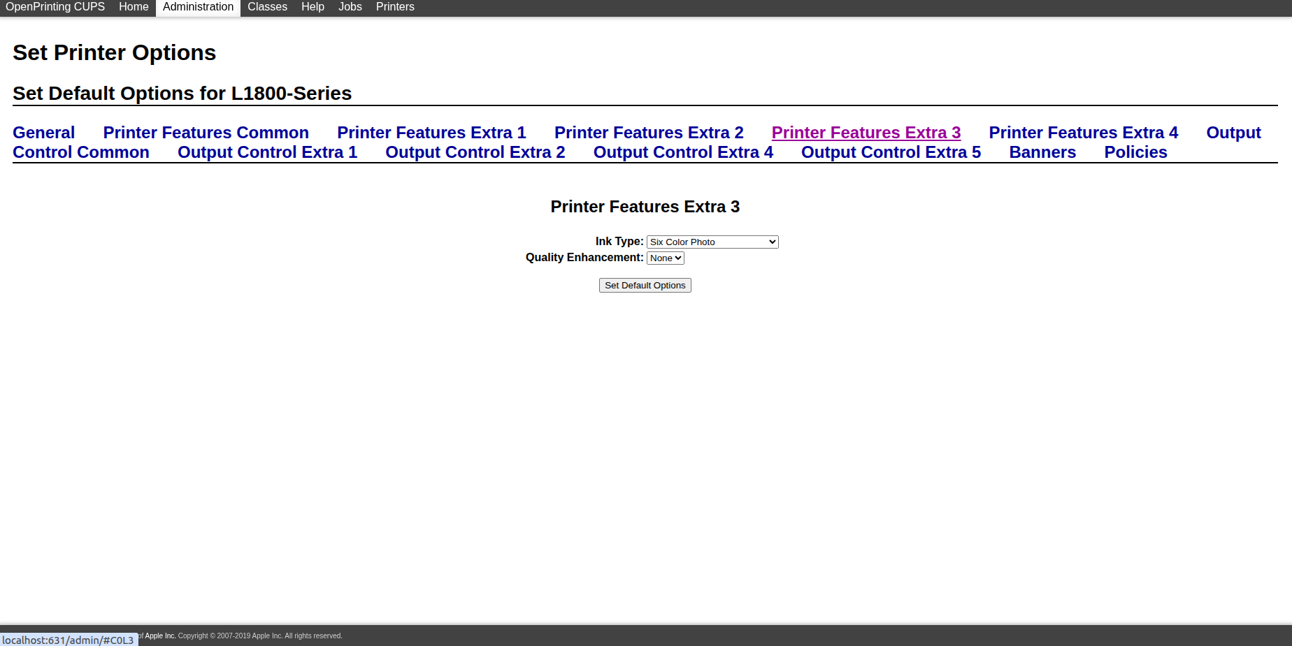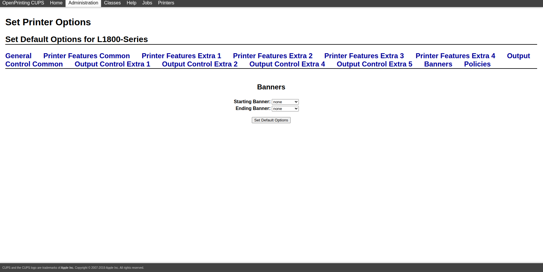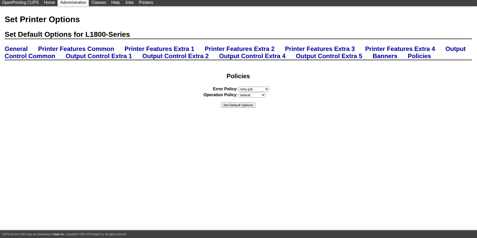 - หลังจากสร้างคิวแล้ว ให้เปิดหน้าของเครื่องพิมพ์และใช้ `Set Default Options`