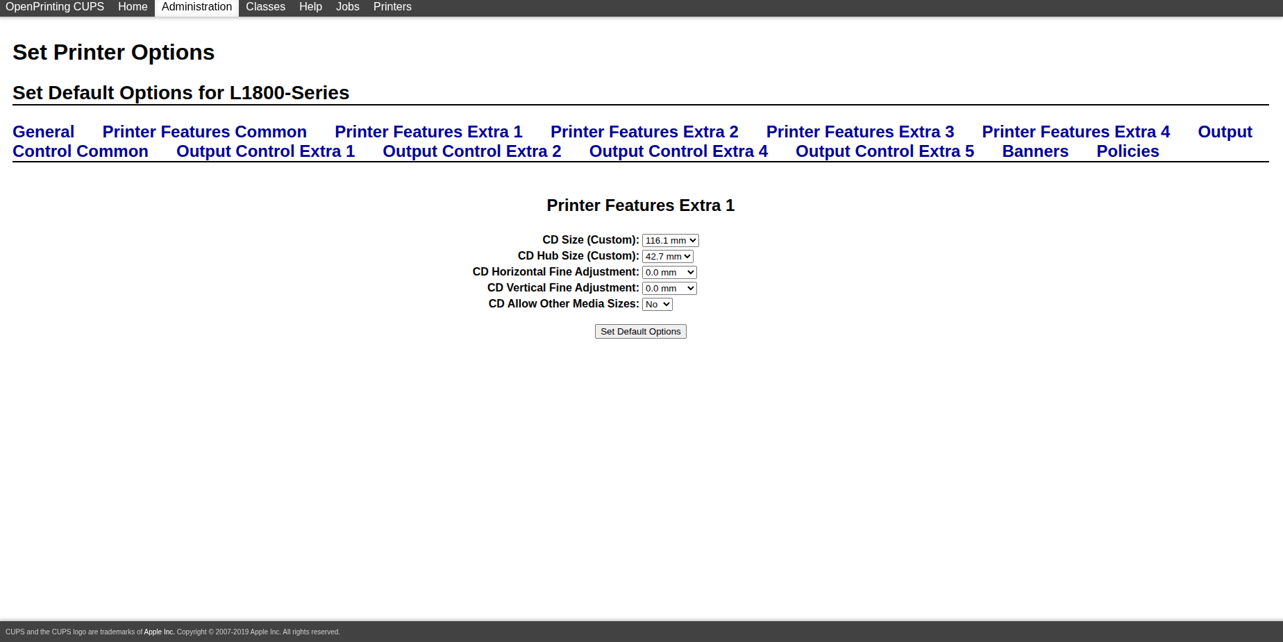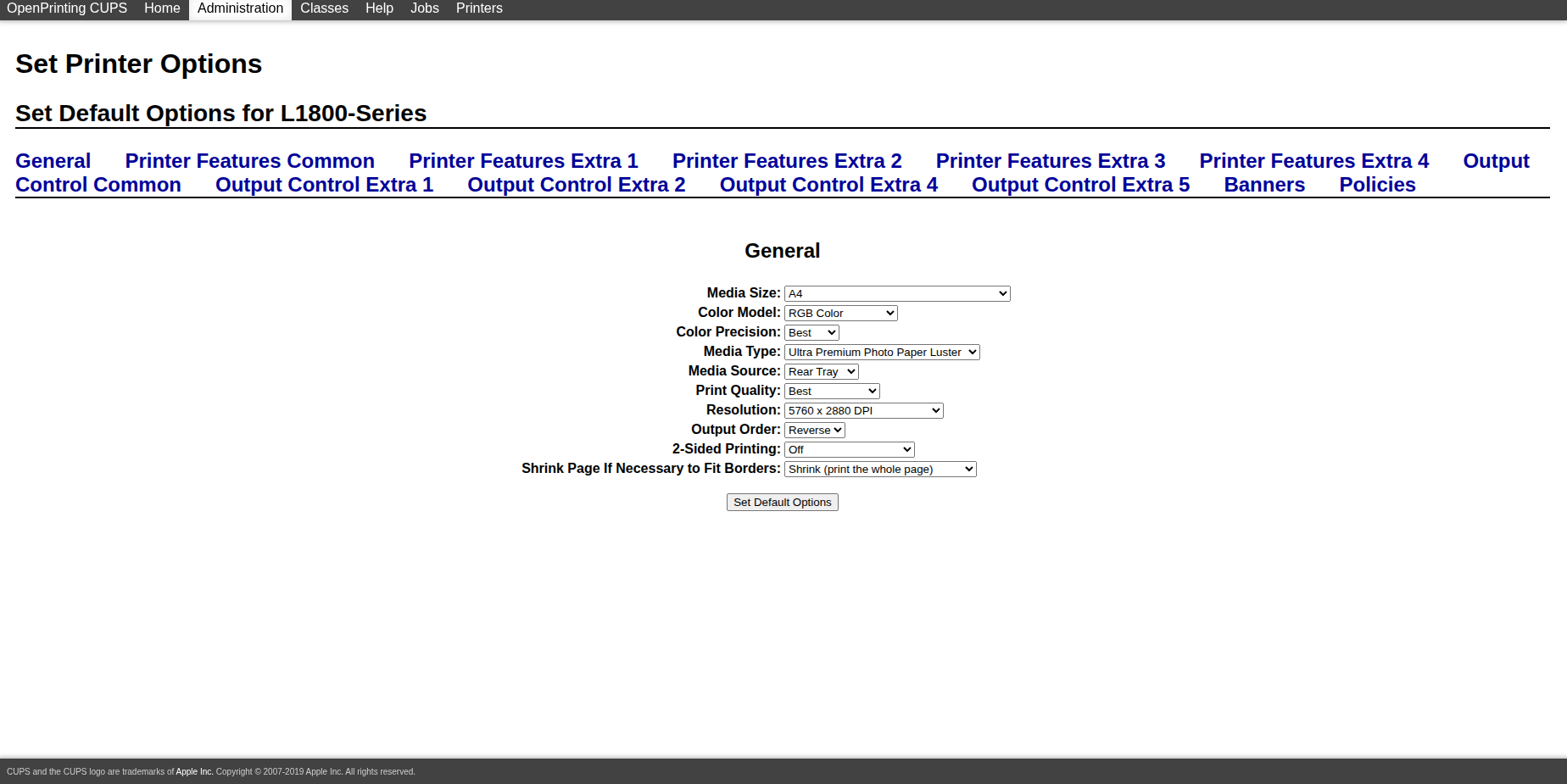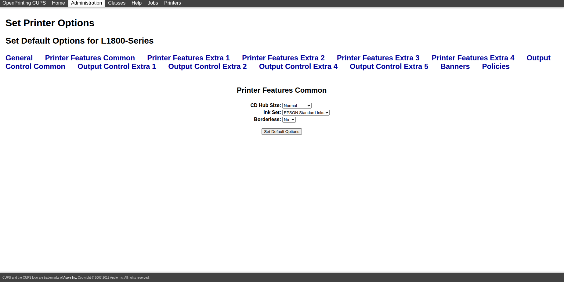 - หลังจากสร้างคิวแล้ว ให้เปิดหน้าของเครื่องพิมพ์และใช้ `Set Default Options`