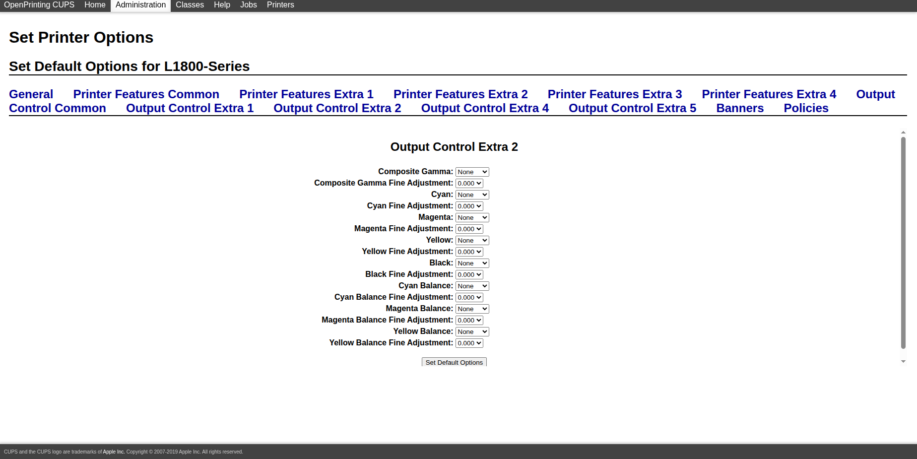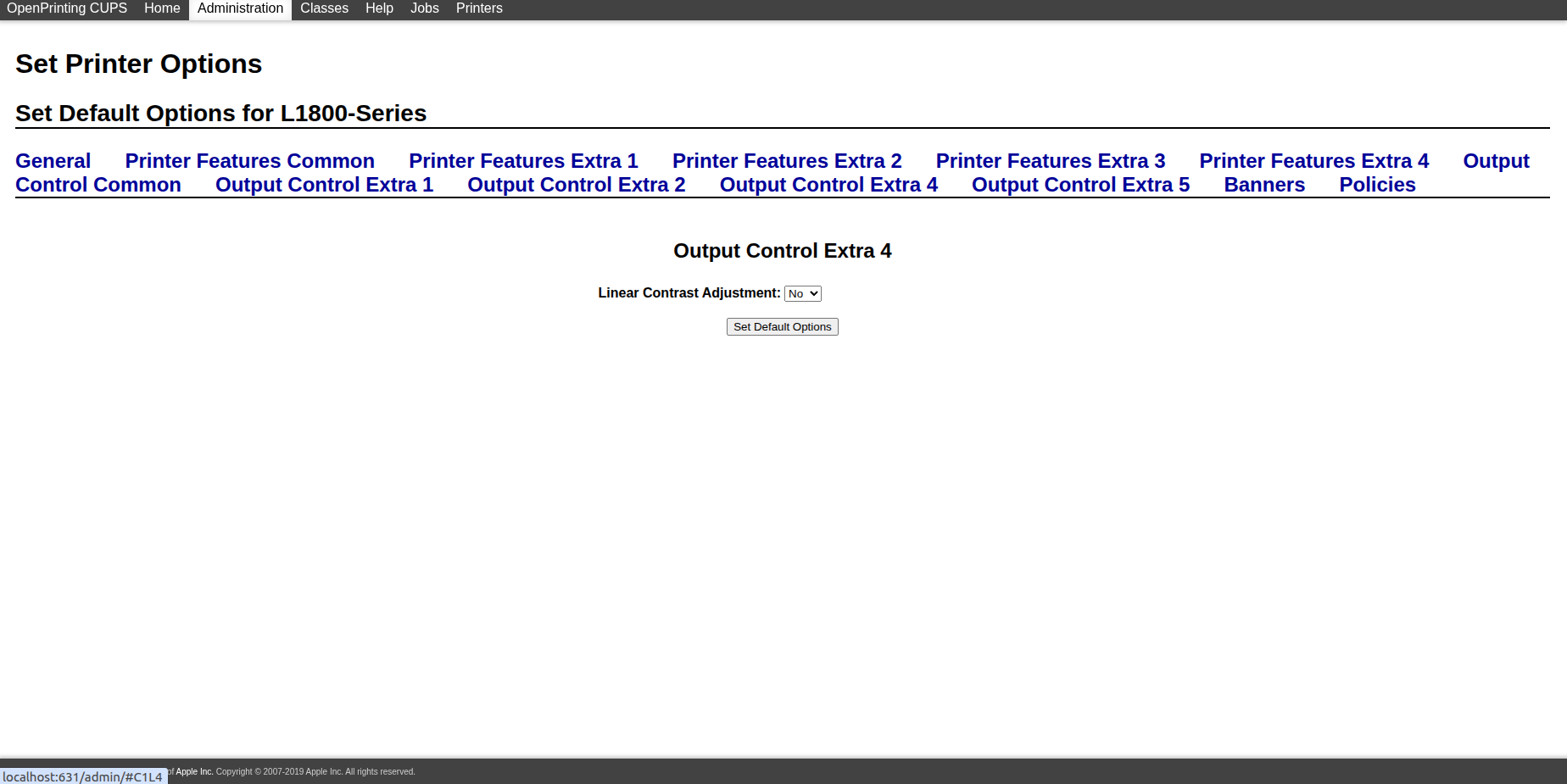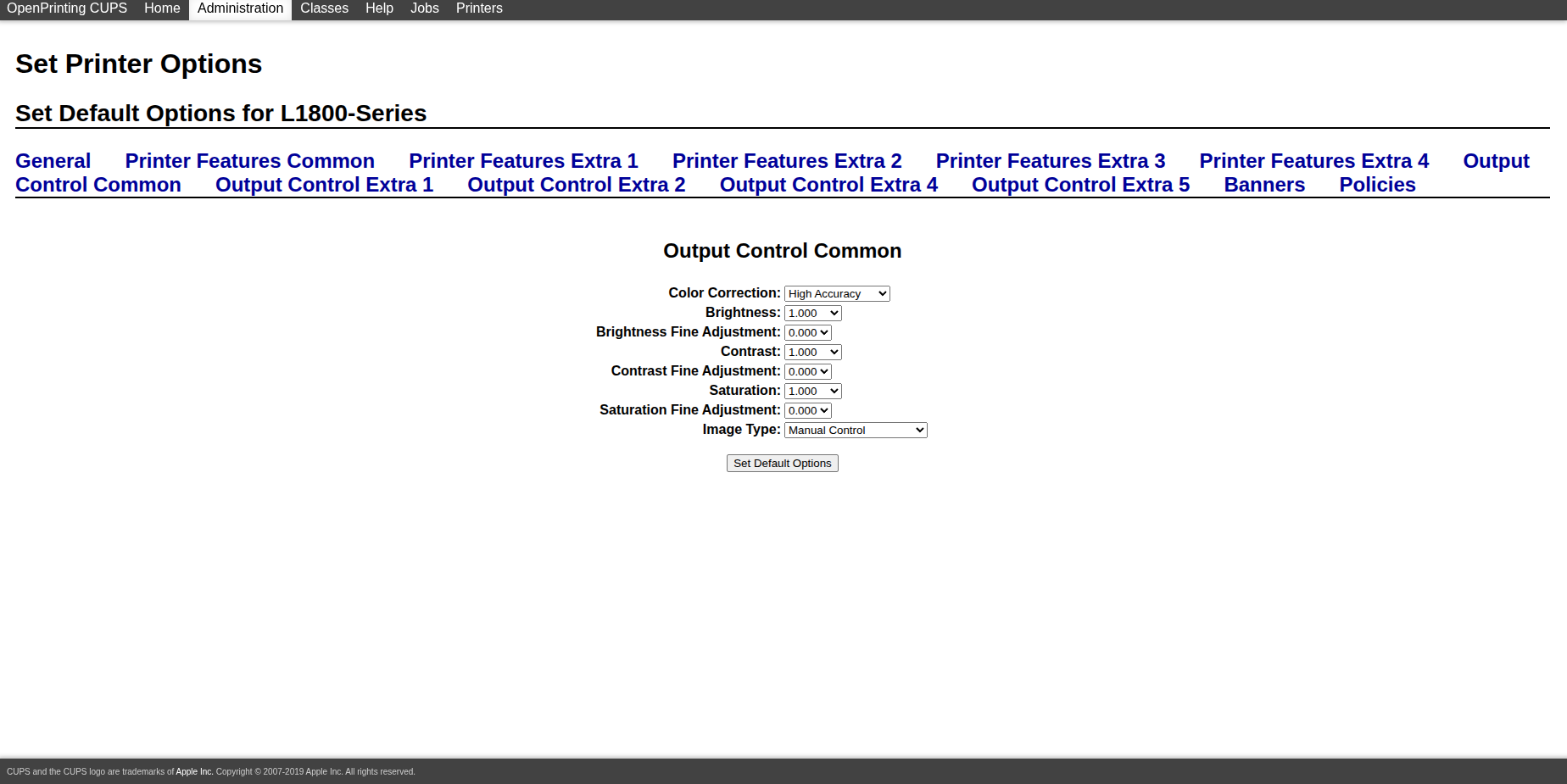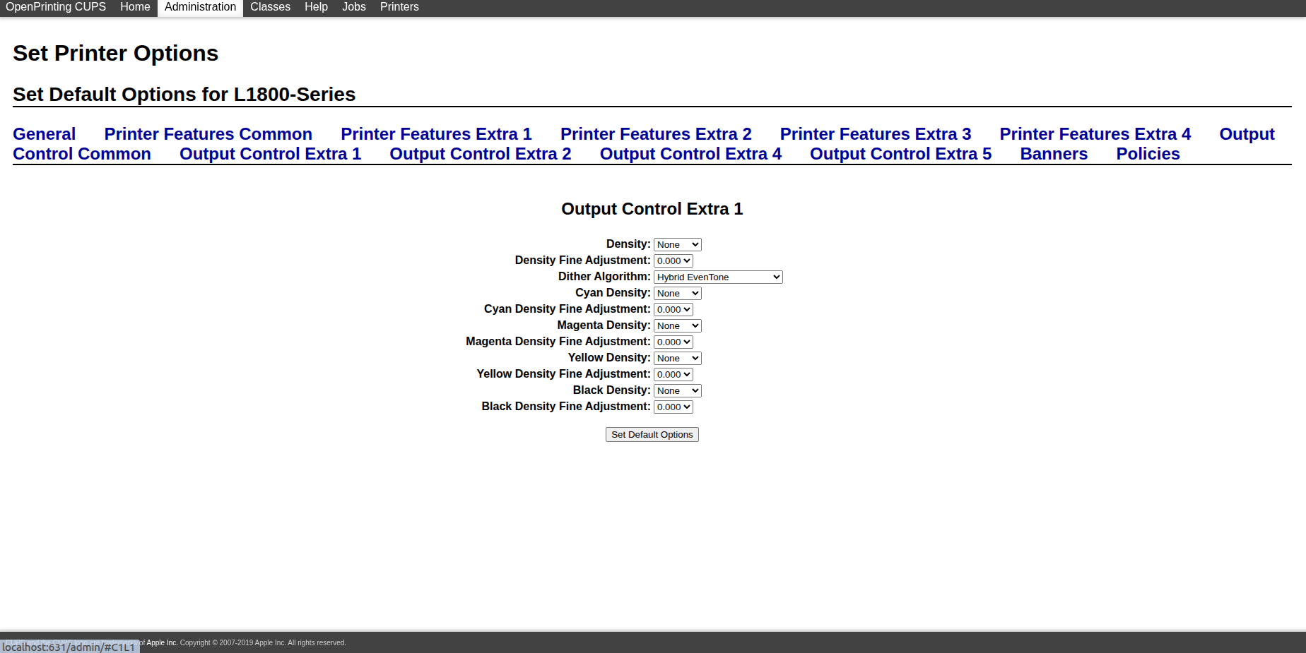 - หลังจากสร้างคิวแล้ว ให้เปิดหน้าของเครื่องพิมพ์และใช้ `Set Default Options`